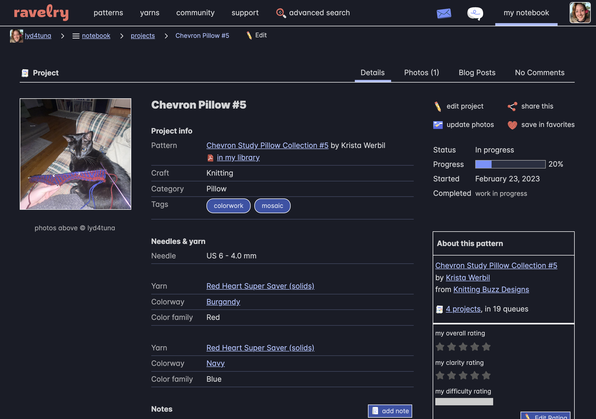 And start your own if you're a crafter! It's a super cool platform for tracking and sharing projects, finding new patterns, tracking/finding the right materials for your projects, and more. Mine is not built all the way out with everything I've actually made by any means, but it includes some highlights.